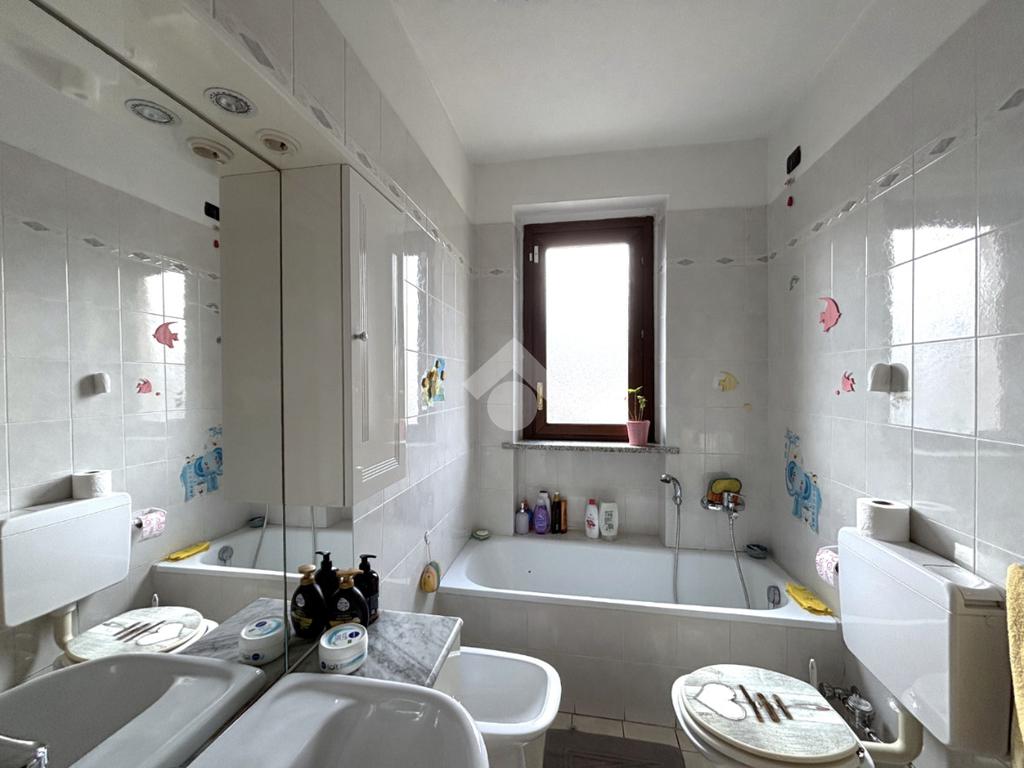 A pochi passi dal centro paese e comodo a tutti i servizi, appartamento NON ARREDATO in palazzina del 2001 al secondo piano con riscaldamento autonomo e spese condominiali contenute. L’ingresso è direttamente sulla zona giorno, composta da un ampio e luminoso soggiorno dotato di porta-finestra per l’uscita sul balcone e dalla cucina abitabile, anch’essa molto luminosa grazie alla porta-finestra per l’uscita sul secondo balcone. Un comodo disimpegno conduce alla zona notte composta da due camere, una matrimoniale e una cameretta e da doppi servizi, dotati rispettivamente di vasca e di doccia. Completa la proprietà la cantina. Possibilità di box auto.